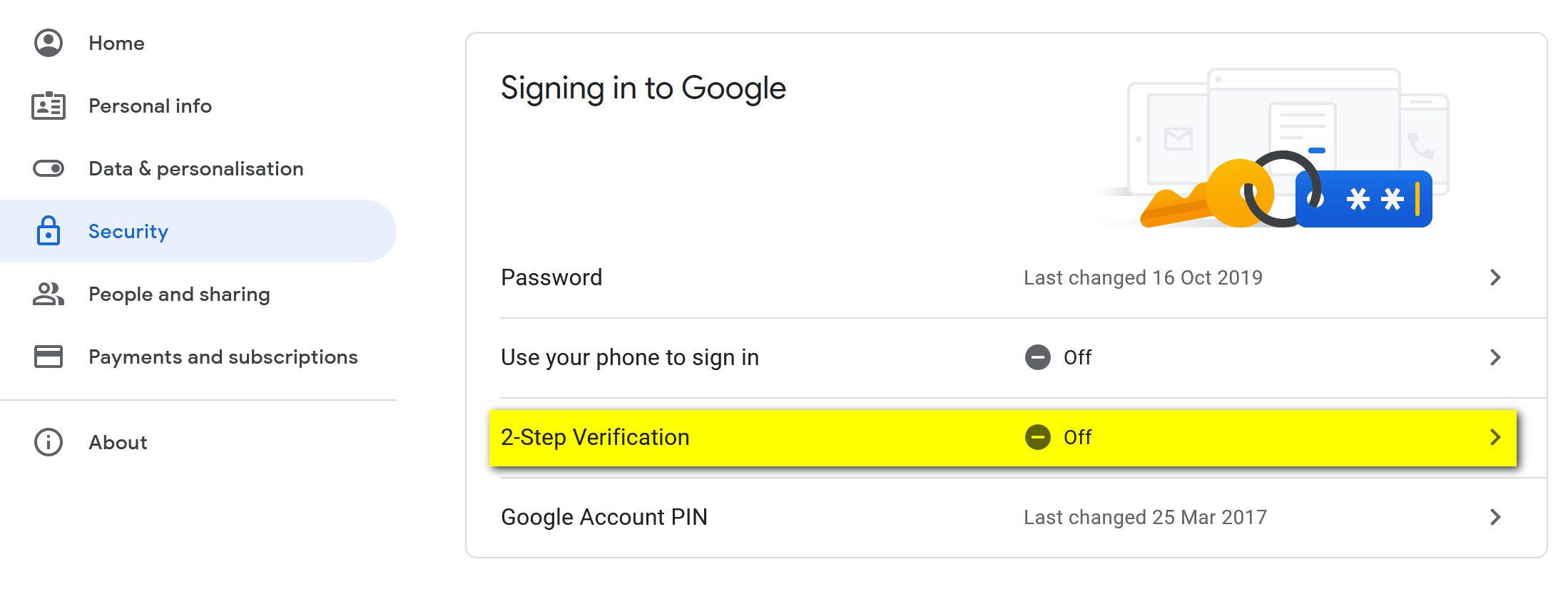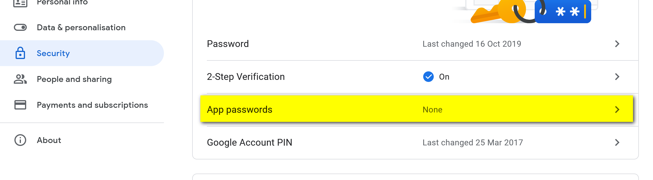 NOTE: If you see the line App passwords under 2-Step Verification then this is already setup and you can skip to part 9.