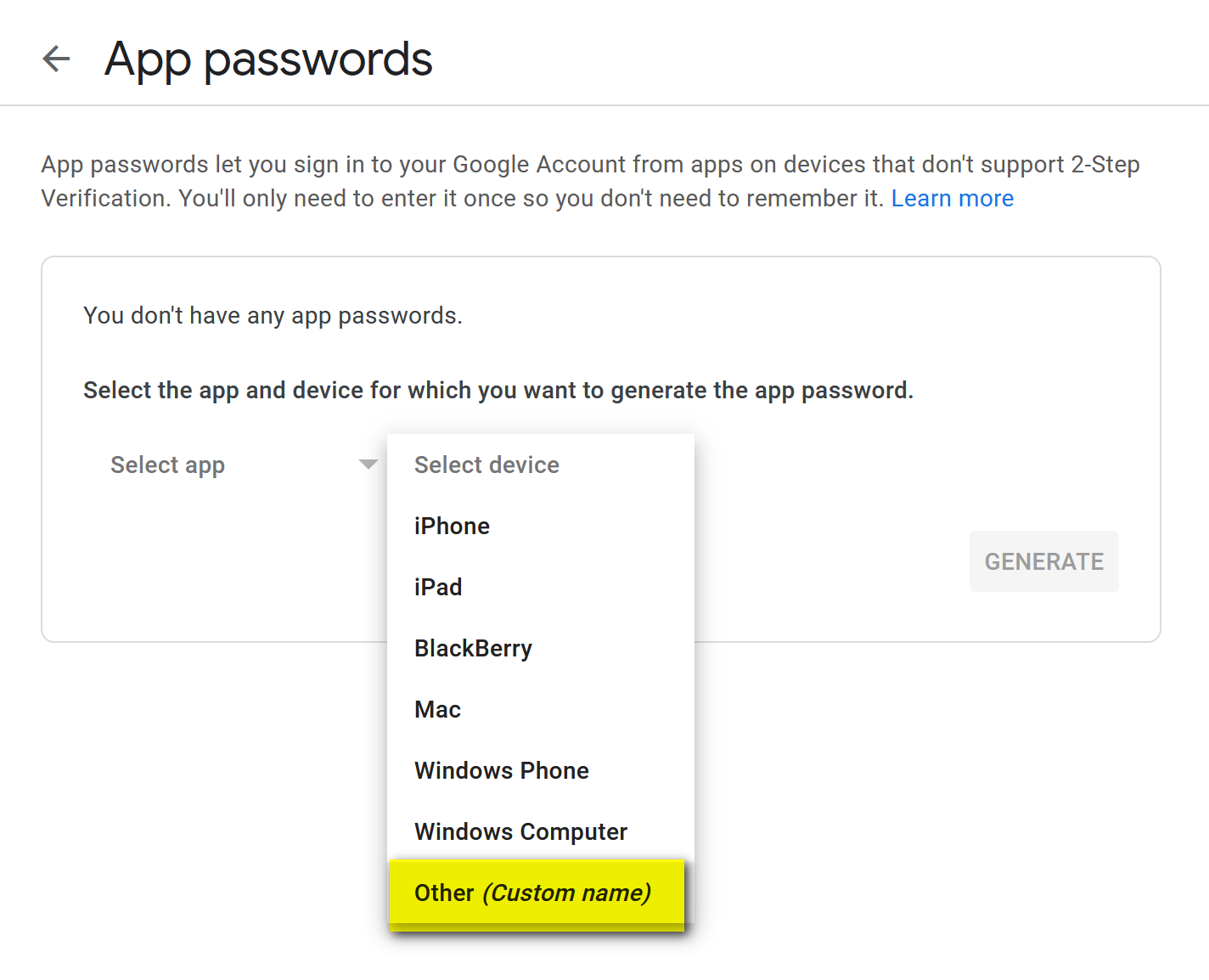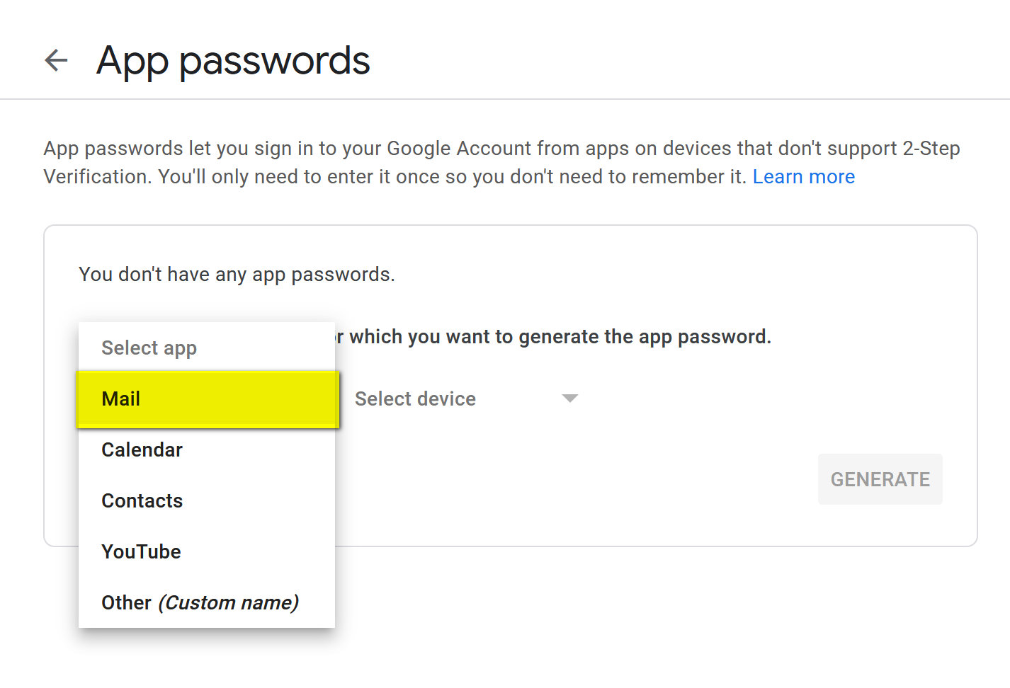 Option 1: Turn on 'Less secure apps' to use your existing Gmail password